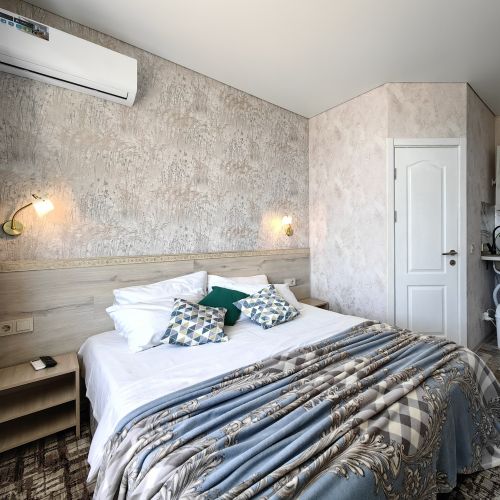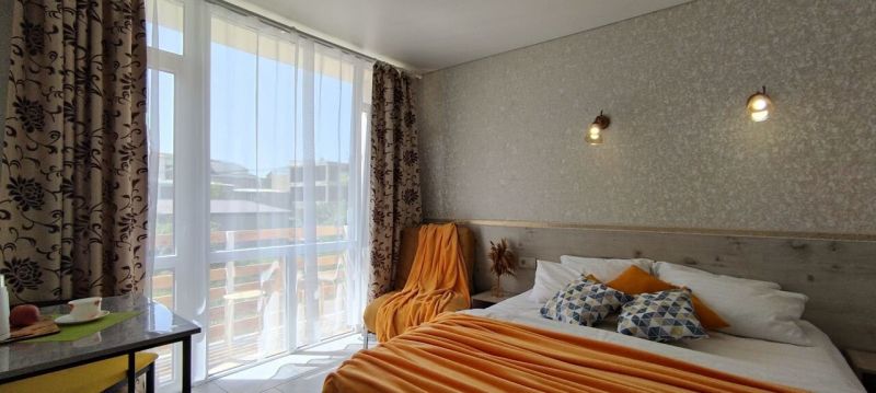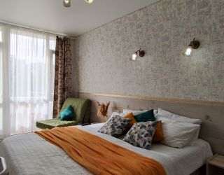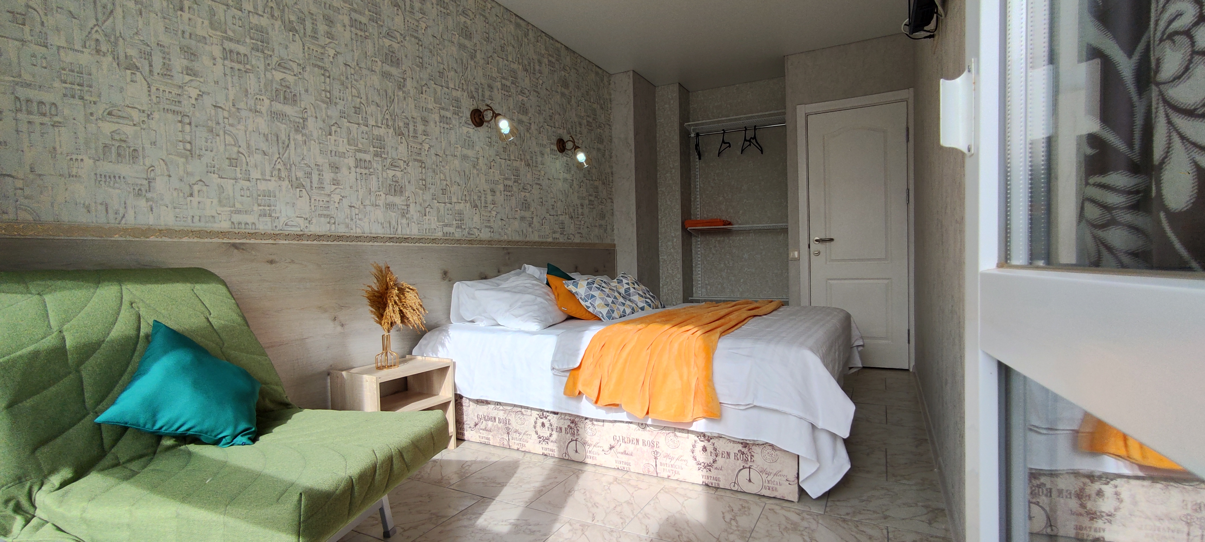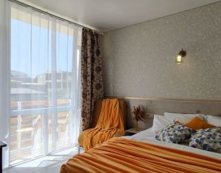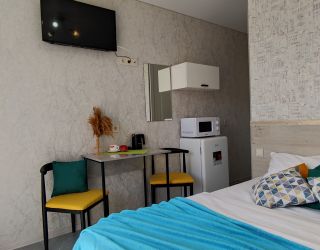 Современный двухэтажный корпус апартаментов занимает благоустроенную территорию на Каштановой улице. В распоряжении гостей апартаменты разных категорий, в том числе есть просторные двухкомнатные апартаменты и номера с мини-кухней. Везде предусмотрен персональный санузел с душем, установлены кондиционеры, есть номера с индивидуальной стиральной машиной. На территории есть мангал, зона отдыха, для детей организована игровая площадка с батутом и качелями. Среди прочих услуг – безлимитный интернет и парковка.